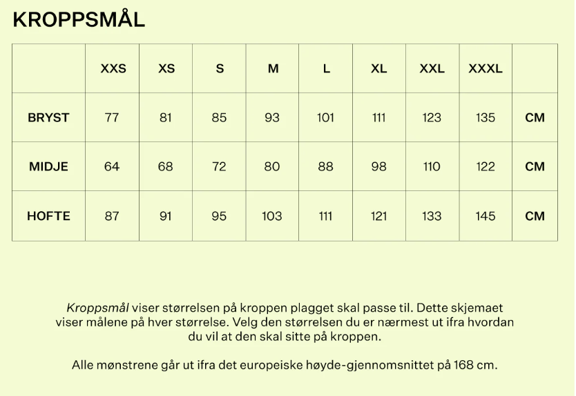 Anbefalt: velg din vanlige størrelse, evt. en størrelse ned hvis du er mellom to.